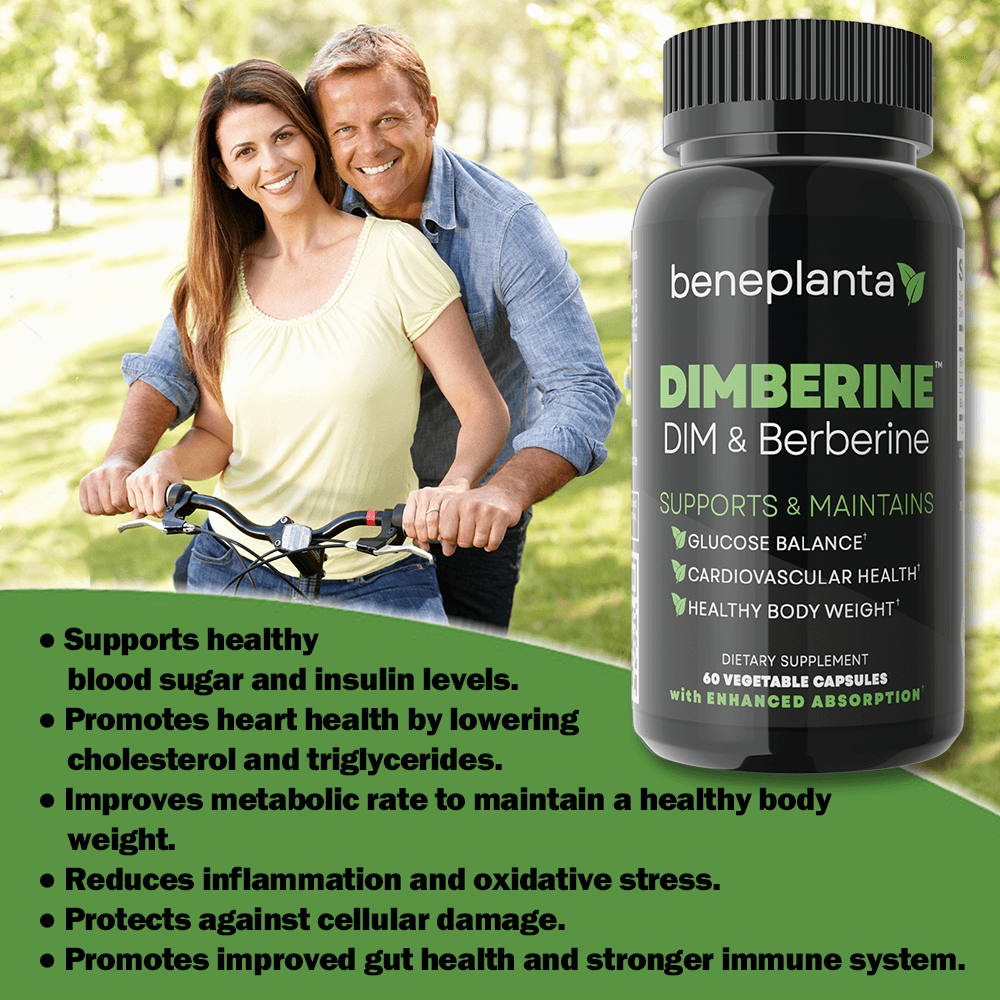 Dimberine™ is a unique blend of premium natural ingredients containing Diindolylmethane (DIM), Berberine HCl, and BioPerine. This powerful combination was carefully designed to support healthy blood glucose, fat metabolism and overall wellness.